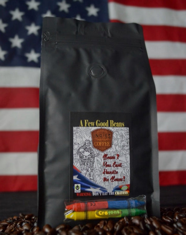 From the halls of Indies Coffee and the Shores of Nicaragua, comes A Few Good Beans. This medium roasted coffee is made with single origin, organic, fair trade Nicaraguan beans. It has slight chocolate and nut notes with a hint of fruit follow. We include a couple of crayon stir sticks to bring you that super power of the United States Marines. Semper Fi!
