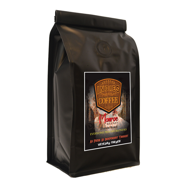 As with every Indies Coffee roast it is not roasted until you order it. Monroe is perfect for the person not big on the “coffee taste”. Its sweeter notes will work you into enjoying a nice cup of black coffee. The flavor and quality of a cup of coffee is dependent on the origin of the coffee bean and the roast. We roast our beans a specific way in order to bring you this flavor and quality the bean intended. This gives every sip a smooth bold finish without the over acidity. We use only Organic Fair Trade coffee beans, which you can taste in every cup. The popularity of this roast proves that Everyone Prefers Blondes.